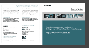 design des cd-rom-aufdrucks und des 16seitigen booklets fuer werbe-cd-rom fuer siemens forumkueche-haendler (2001)