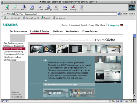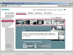 mitarbeit an der entwicklung des designs der gesamten homepage fuer siemens forumkueche (2001, heute offline)